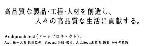 アーチプロキテクト合同会社は、 IT業界での長年の経験により培われた ソフトウェア開発・品質改善・プロジェクトマネジメントの 知恵を生かし、人々に高品質な生活を提供することを 経営理念として活動しております。 デジタルカメラやビデオカメラなどのデジタル家電製品、 スマートホン/パソコンのゲームやアプリケーションから C/Sシステム、そしてWEBアプリケーションまで、 ソフトウェアが搭載される全ての製品/サービスについて、 プロセス及びプロダクト品質の両面からの高品質化を、 ミッションとしております。 高品質をテーマに独創的なサービスを展開し、 人々の豊かな暮らしに貢献して参りたいと存じますので、 今後も引き続きご支援賜りますようお願い申し上げます。 アーチプロキテクト合同会社 代表 北山太志 |